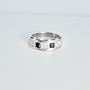 Este anillo de Platino es una joya única y excepcional. Las dos zafiros carré de 0,5 quilates y los 12 diamantes talla Princesa de 0,4 quilates,  pureza VVS y color F, hacen de este anillo una obra maestra codiciada por los apreciadores de la verdadera preciosidad.