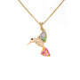 Acompaña los tonos cálidos del Oro de 18kt con los conmovedores colores de los circones de este Colgante Colibrí. Te dará un brillo único y acentuará tu look con su rara elegancia. Una adición única para tu colección de joyería. (No incluye cadena)