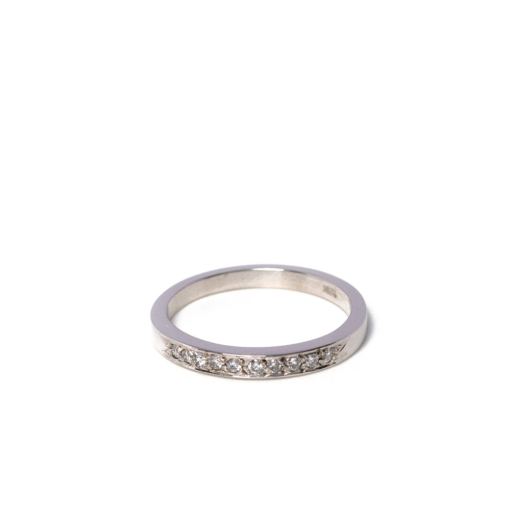Anillo Oro blanco Tipo medio cintillo 10 brillantes redondo grano riel