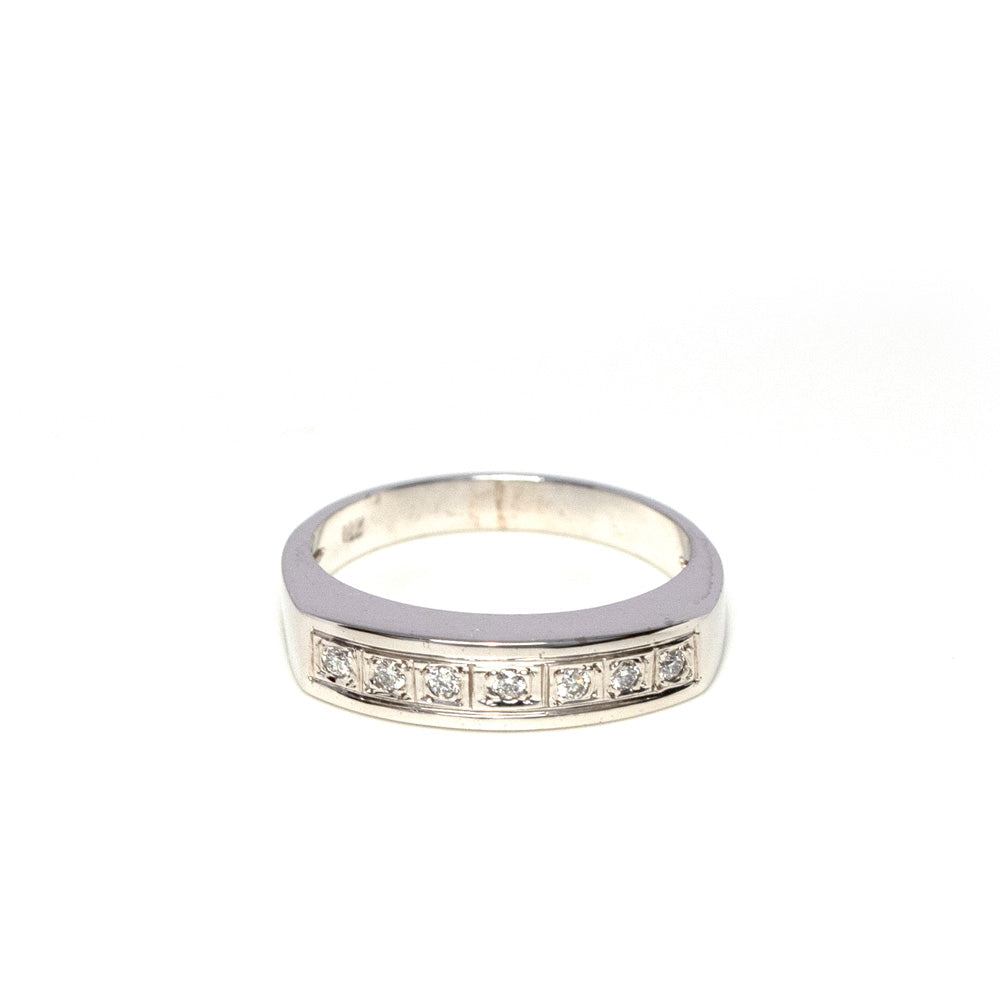 Anillo Oro blanco Medio Cintillo 7 brillantes 10,5 ct clasico tapado FGSI