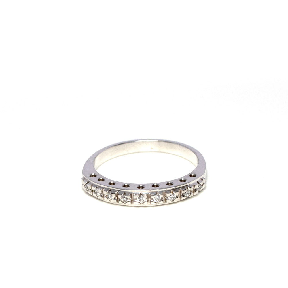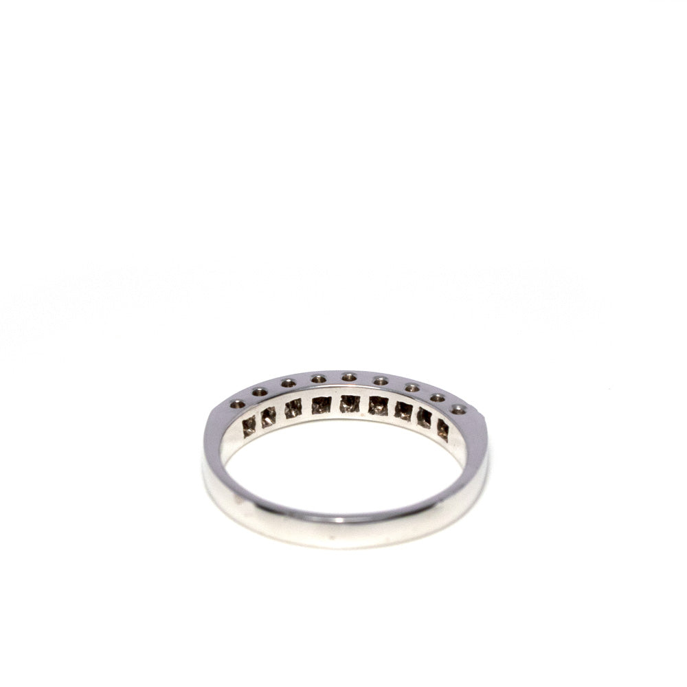¡Descubra el Anillo Medio Cintillo en oro blanco con 9 brillantes de 0,10 quilates! Color FG, pureza SI, con engaste tipo grano ¡una joya única que cautivará todos los sentidos!