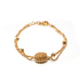 Esta pulsera de Oro Amarillo 18Kt se compone de una doble cadena fina con 4 bolas facetadas decorando cada eslabón y una forma oval sobresaliendo en el centro. Esta hermosa joya única, fabricada artesanalmente con materiales de la más alta calidad, añade un toque elegante a cualquier atuendo.
