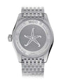 MIDO emplea exclusivamente acero inoxidable 316L de alta calidad para elaborar los componentes de acero, por lo que son completamente aptos para el contacto con la piel. Este material resiste a la corrosión, no se ve afectado por los campos magnéticos y demuestra una excelente durabilidad, por lo que los relojes de acero inoxidable de MIDO son creaciones duraderas que superan la prueba del paso del tiempo y las condiciones meteorológicas adversas.