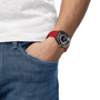 Descubra el Tissot Sideral, una cautivadora fusión de encanto vintage y artesanía moderna. El reloj cuenta con una caja de carbono forjado de 41 mm de ancho y una vibrante correa roja, que rinde homenaje a sus icónicas raíces de los años setenta. La esfera muestra una animación luminiscente multicolor que realza su encanto único. Resistente al agua hasta 30 bar (300 metros) y equipado con índices recubiertos de Super-LumiNova®, el Sideral es una pieza única para los que marcan tendencia y los entusiastas de la historia. La correa intercambiable de caucho perforado permite adaptar el estilo sin esfuerzo. Abrace lo extraordinario con el Tissot Sideral.