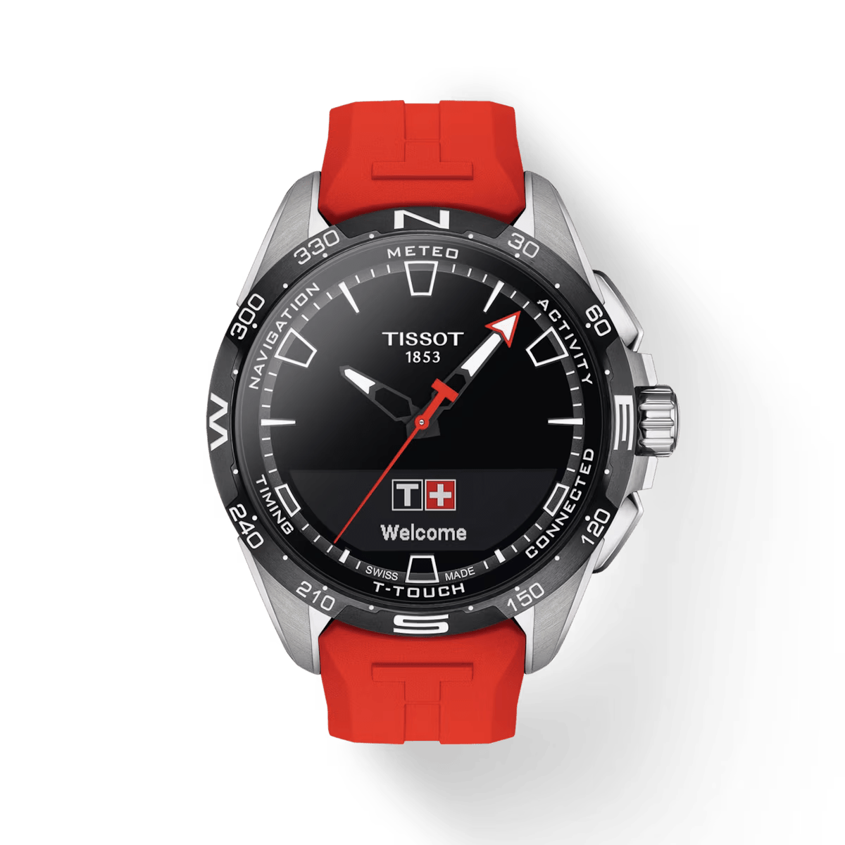 Descendiente del primer reloj táctil multifunción de la historia, el T-Touch Connect Solar encarna la filosofía de Tissot: Innovators by tradition. El T-Touch Connect Solar es, ante todo, un reloj, conectado, respetuoso de la privacidad, interactivo, autónomo, contemporáneo, sostenible y "Swiss Made". Está inspirado en el diseño del T-Touch, más moderno, elegante, más nítido, afirma con fuerza su linaje como reloj deportivo, técnico y todo terreno. La caja de titanio de 47 mm es hipoalergénica y está equipada con un bisel de cerámica ultrarresistente. Se encuentra disponible tanto en titanio satinado, titanio PVD negro o titanio PVD oro rosa. El sistema operativo SwALPS, desarrollado por Swatch Group en colaboración con CSEM, es totalmente "Swiss Made" y es compatible con iOS, Android y pronto Harmony OS. Cuando se encuentra en modo conectado, posee múltiples funciones, como el seguimiento de activida o las, notificaciones de mensajes o llamadas. La información se muestra en una pantalla MIP (memoria en píxeles) altamente legible. Cuando no está conectado, recupera las funciones de un T-Touch Solar Expert: calendario perpetuo, cuenta atrás, cronógrafo, alarmas, meteorología y altímetro. Tiene una autonomía casi infinita en modo desconectado y en modo conectado, pudiendo llegar hasta los 6 meses dependiendo de su uso y su exposición al sol.